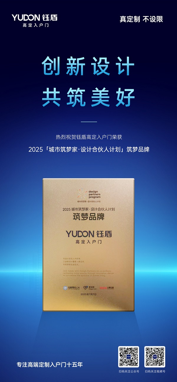 在中国建博会发起的「城市筑梦家」年度颁奖盛宴上,钰盾高定入户门凭借创新的设计与非凡的实力, 荣获设计合伙人计划【筑梦品牌】称号。这不仅是对钰盾品牌实力的至高认可,也为入户门行业树立了创新标杆,更是对其引领未来入户门设计创新、共筑城市梦想家园的强力背书。