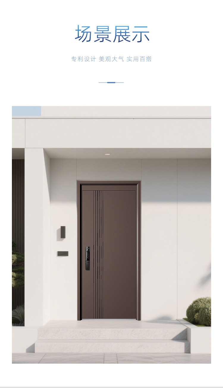 摒弃一切繁杂见余,纯粹的门板似一方静谧画布,任由错落有致的线条肆意挥洒。这些线条,绝非随意而为,它们仿若灵动音符,跳跃在空间的乐章之上。有的刚劲笔直,似破晓曙光划开苍穹,赋予大门挺拔坚毅之感。